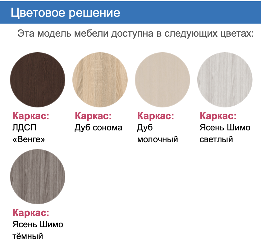 - ЛДСП (толщина 16 мм) - цвета в ассортименте
